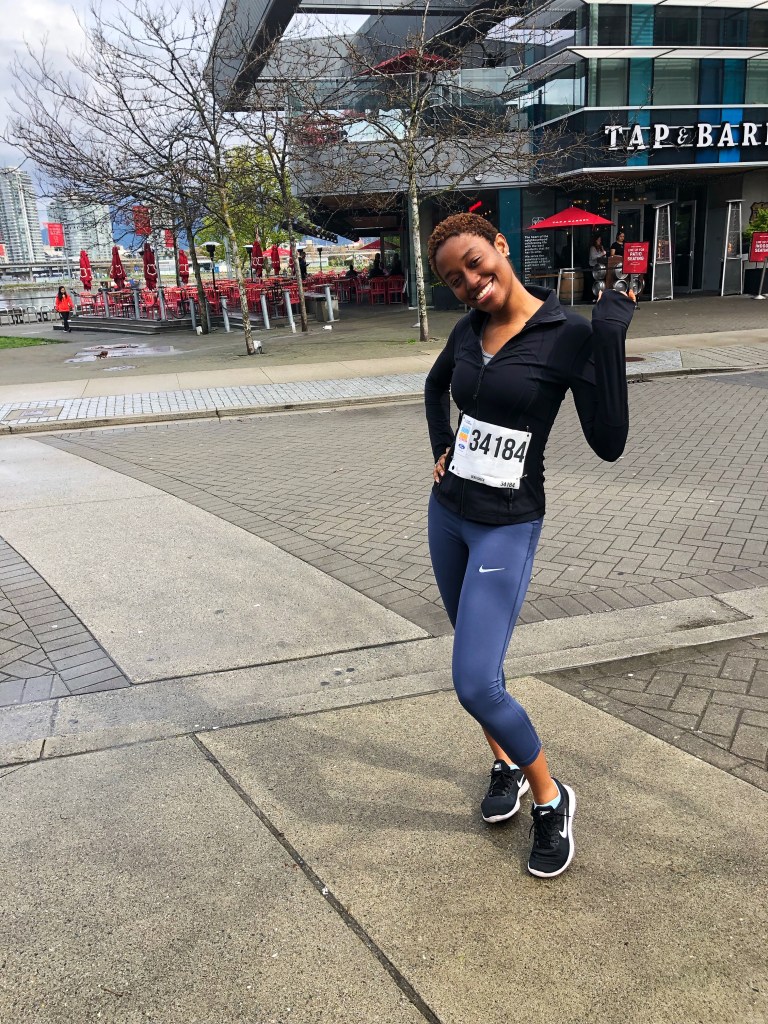 On Sunday, I went on my first race (Vancouver Sun Run- 10kM) and whew my legs. Good thing I had been training prior to the race. Lunch time runs will definitely become a thing for me especially as the weather warms up a bit (it’s less kilometres, though). I’ve always wanted to go on a race for charity, color run, to mention a few. It has been on my bucket list for a while- shout-out to my aunty. The initial goal was to attempt it. If like me you struggle with the 10-minute cardio warm-ups, you may understand my fears when I understood the race was 10km. During the race, I had the time to reflect on my journey so far which involved signing up, preparing for the race and taking part in the race. Here are some insights I would like to share.