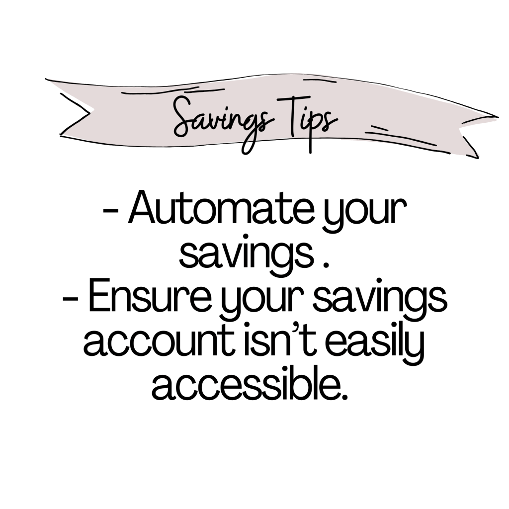 - Automate your savings: Just the same way your monthly subscriptions are automated and come out of your bank on a certain date, I think this is worth applying to your savings account too.